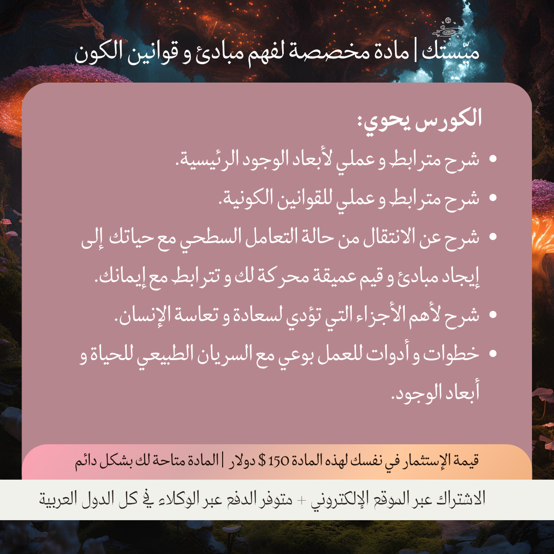 اني أشاركم مش بس معرفة نظرية تخليك منفصل عن الواقع و متطرف ، بل معرفة تساعدك تتوازن و ترجع لقواعد حقيقية مبنية على الايمان و السعي نحو توحيد و تكبير الله بداخلك على اي اختبارات و معضلات بحياتك