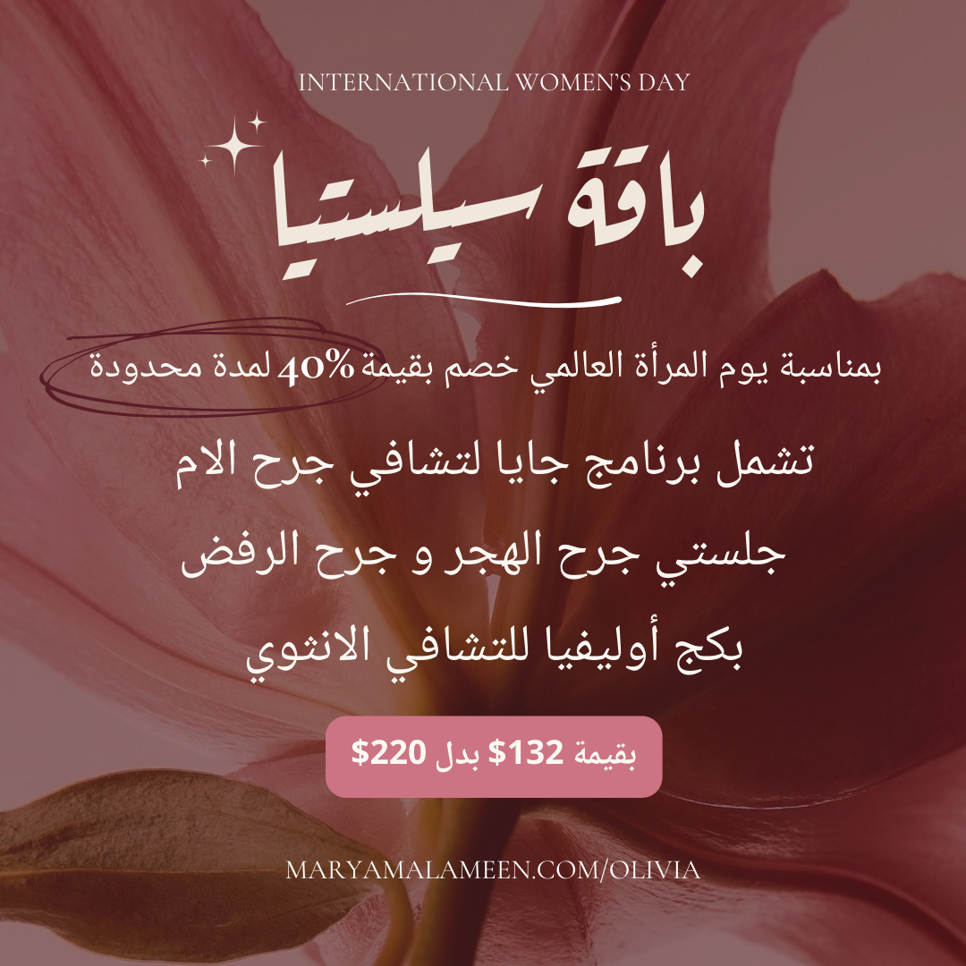 في هذا الجزء أضيف كل فترة ورش و جلسات لنساء بكج أوليفيا لدعم رحلة التشافي و العيش من فطرتك الأنثوية